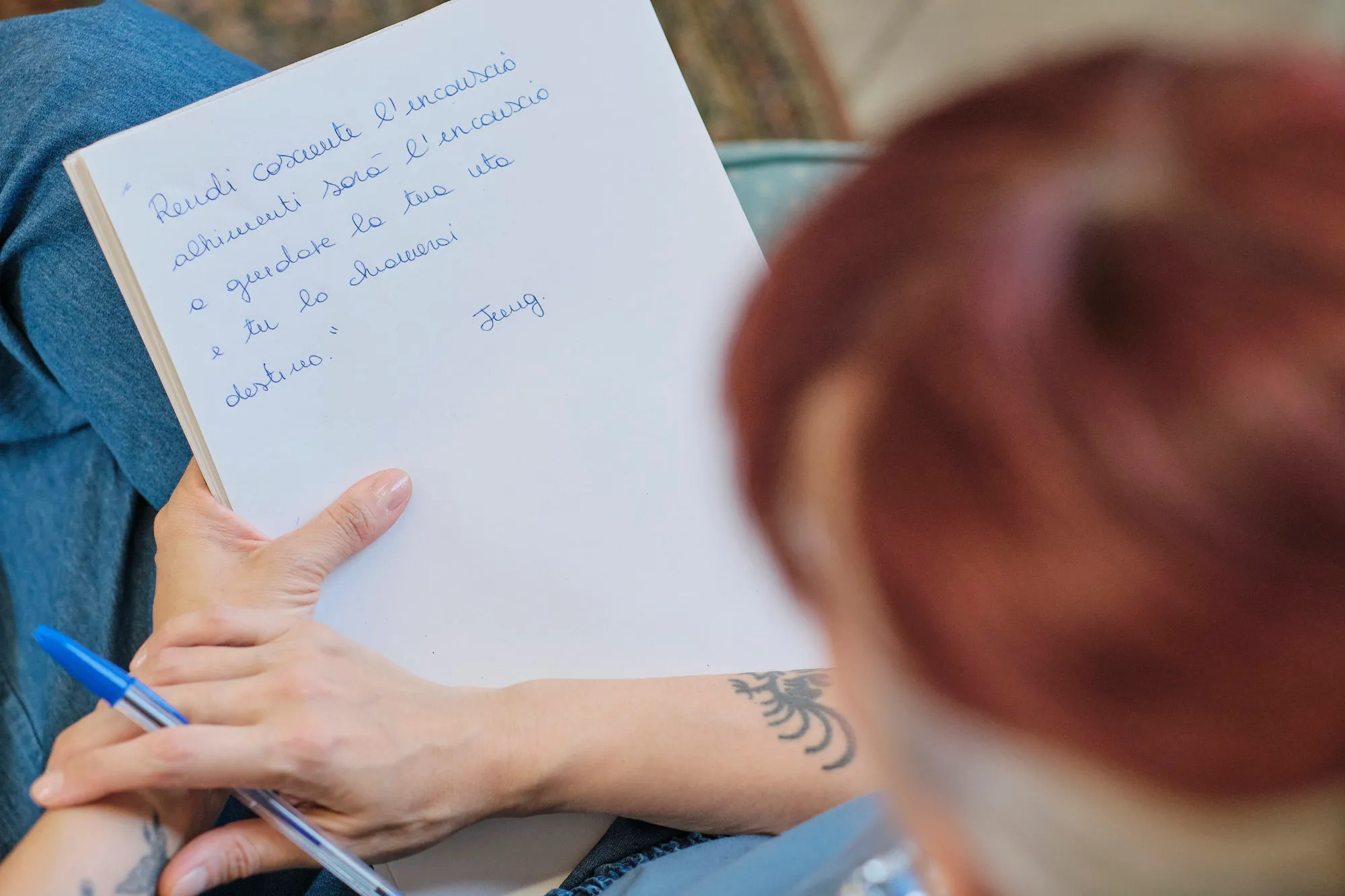Il pittogramma richiama la figura di un colibrì disegnato con una sola linea con un tratto unico. Questa linea, che inizialmente parte confusa e ingarbugliata, va infine a delineare la forma di un colibrì, sinonimo di perseveranza, forza e rigenerazione, proprio come vuole essere il percorso di benessere psicologico.
