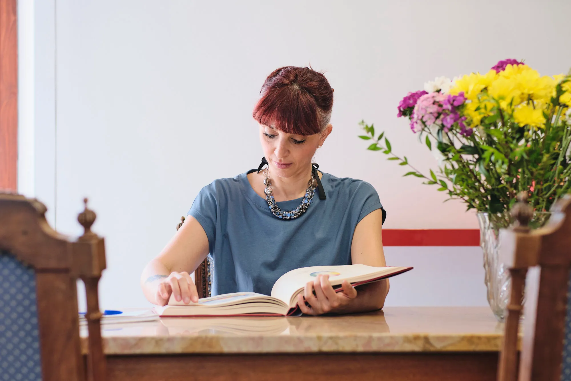 Come colorazioni principali abbiamo scelto due sfumature di viola, assieme a un beige e a un grigio antracite. Il principale font scelto, che è anche quello utilizzato nel logotipo, è un font serif-display contemporaneo.